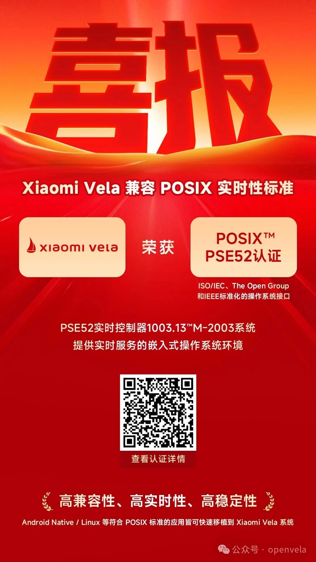 在开源实时操作系统(RTOS)领域,Xiaomi Vela 实现行业领跑——率先完成 POSIX PSE52 官方全项认证。这一里程碑成果意味着开发者可无缝迁移现有 Linux 生态的成熟应用与工具链到 Xiaomi Vela 系统,无需额外适配即可开展开发工作,大幅降低学习成本与技术门槛。Xiaomi Vela 团队表示:“我们希望彻底打通不同系统间的技术壁垒,通过全面拥抱国际标准,让开发者的创