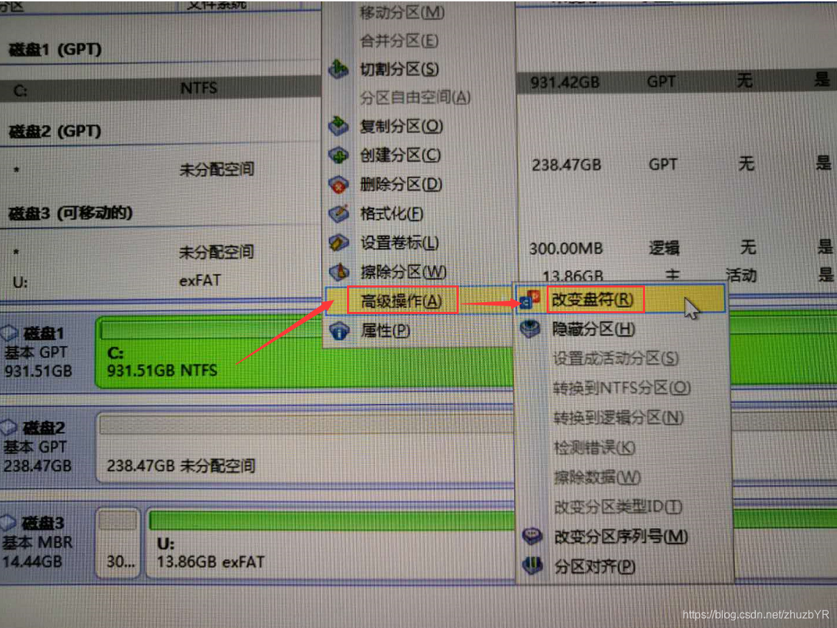 进入分区助手,盘符会变乱,选择盘,右键,高级操作,改变盘符,修改一下即可