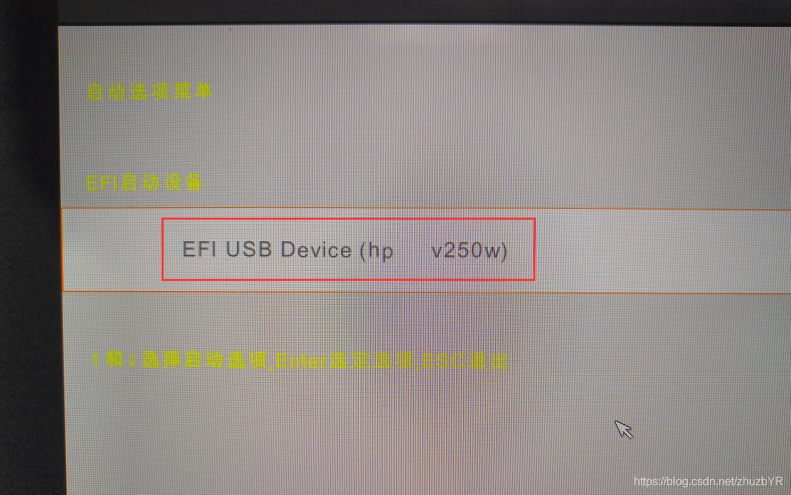 按F10,选择时,此时电脑会重启,重启狂按F12(本人是小米游戏本,进入主板启动顺序是F12,其他主板请自行百度“主板启动顺序”),进入之后将 EFI 启动设备选择自己的U盘启动,即有USB字样的