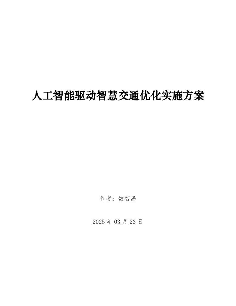 【AI交通】人工智能驱动智慧交通优化实施方案