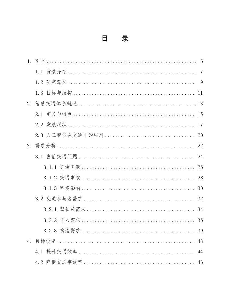 智慧交通体系是通过运用先进的信息技术、通信技术、计算机技术和人工智能等手段,以实现交通管理、交通服务和交通参与者之间的智能化互动,进而提升交通系统的安全性、效率和可持续性。智慧交通不仅涵盖了道路交通、公共交通、物流运输等多个领域,还涉及到了政策制定、法规执行等管理层面,形成了一个综合性的交通生态系统。