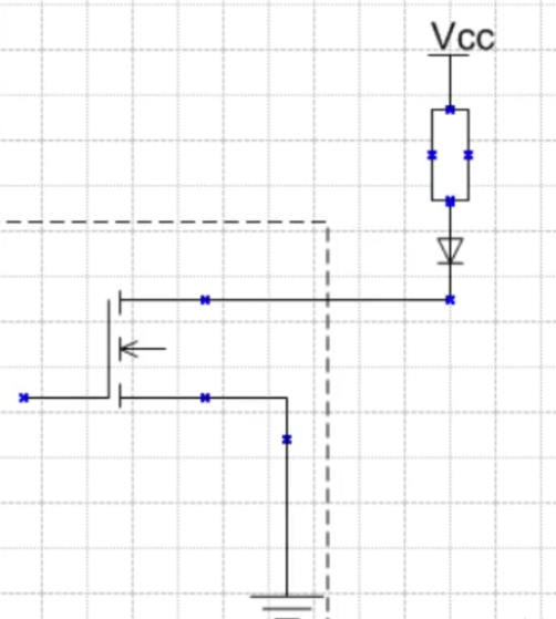 控制逻辑:当mos管导通时,IO输出为低电平,当mos管截止时,iO输出为外电路施加电平,这样也起到了电平匹配的作用。
