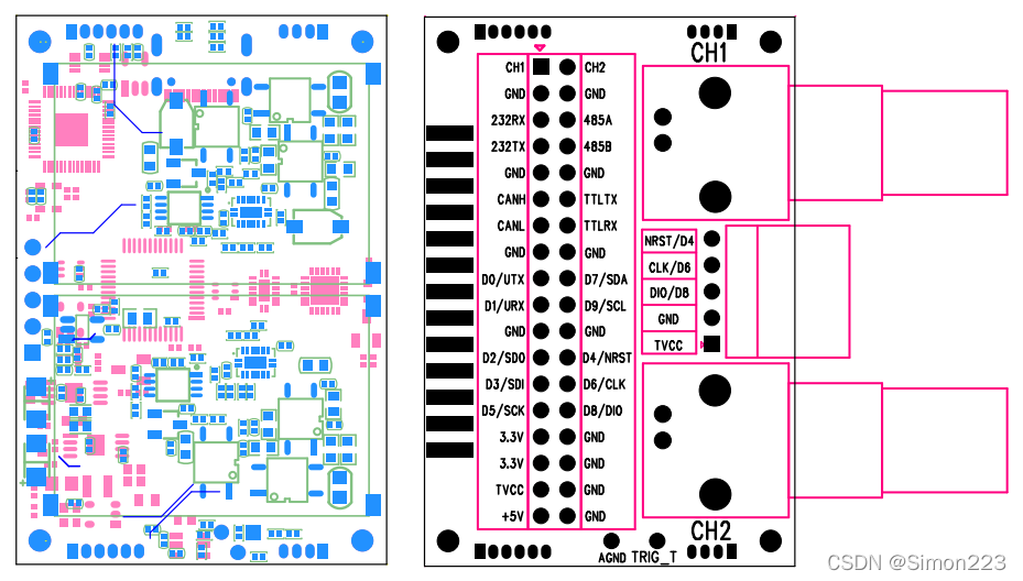 (1)大小和BNC头转接板差不多大,分2个板子,上下安装亚克力保护板