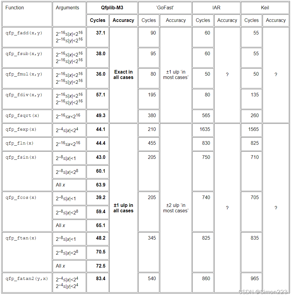 这个库非常不错,对于不带硬件浮点的M0和M3系列芯片来说,值得一用,特别是做了浮点三角函数,做了高度优化。