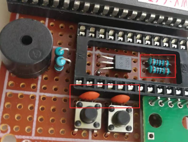 下面的电路中, 使用了10KR电阻和100nF(104)电容作为硬件防抖处理