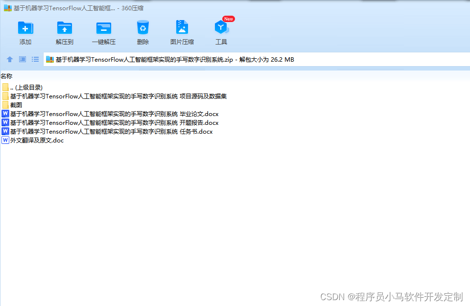 基于机器学习TensorFlow人工智能框架实现的手写数字识别系统 毕业论文+任务书开题报告+外文翻译及原文+项目源码及数据集