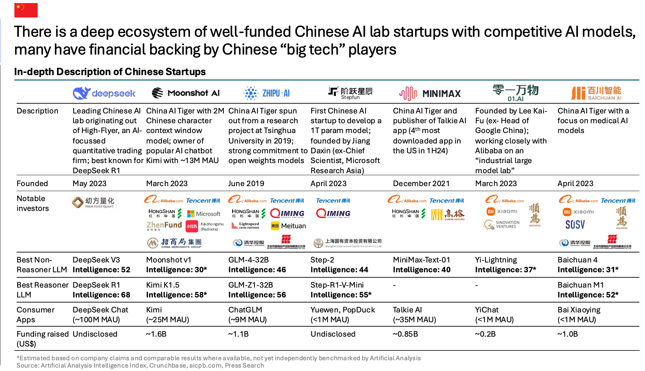 中国拥有一个资金充足的AI实验室初创企业生态系统,许多企业获得了中国“大型科技”企业的资金支持。