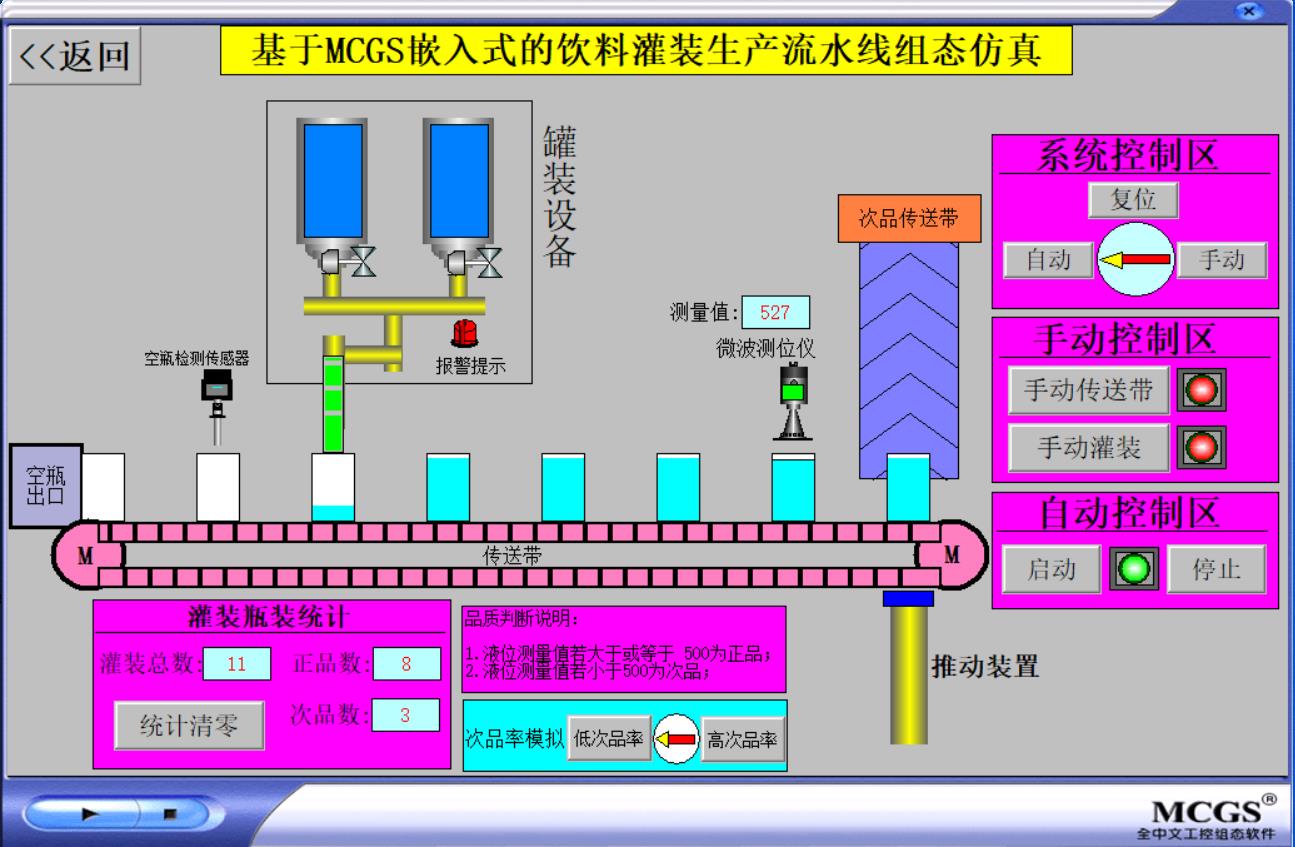 MCGS嵌入式 饮料灌装生产流水线组态仿真 罐装生产流水线