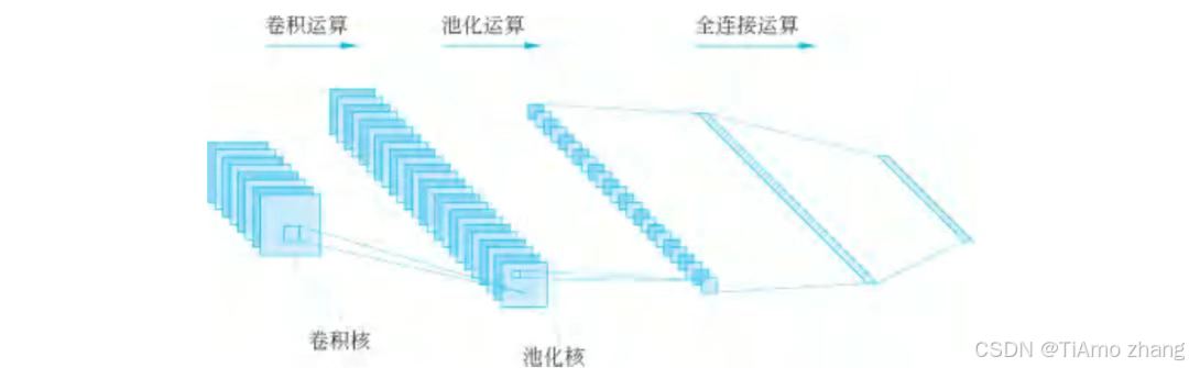 卷积神经网络是一种具有局部感受野、权值共享和池化操作的神经网络,尤其适用于处理图像数据。卷积神经网络能够自动学习空间层次结构的特征表示,从而在计算机视觉任务中取得了显著的成功。卷积神经网络的基本组成包括卷积层、激活函数、池化层和全连接层,如图 5.3 所示。通过堆叠这些层,卷积神经网络能够捕捉图像中的局部特征和全局信息。