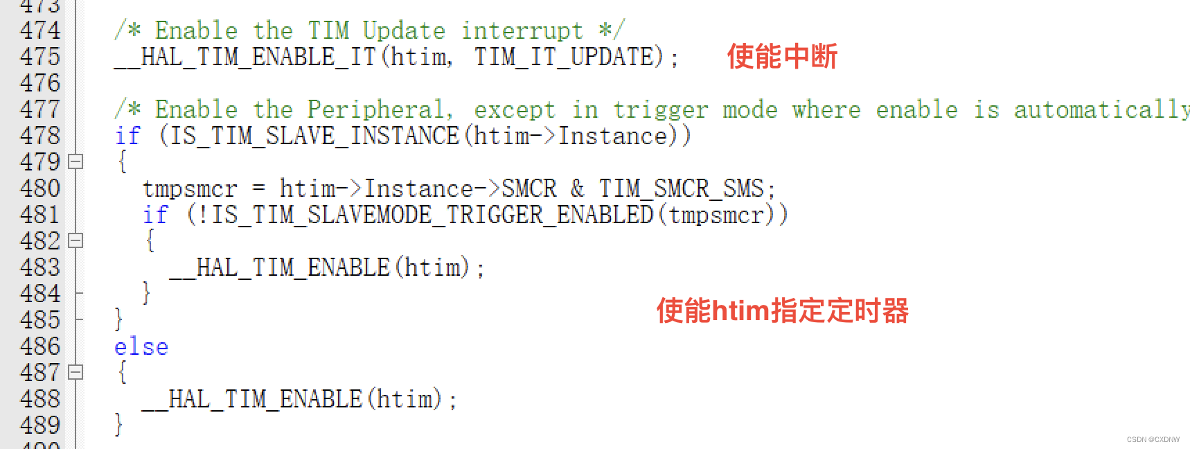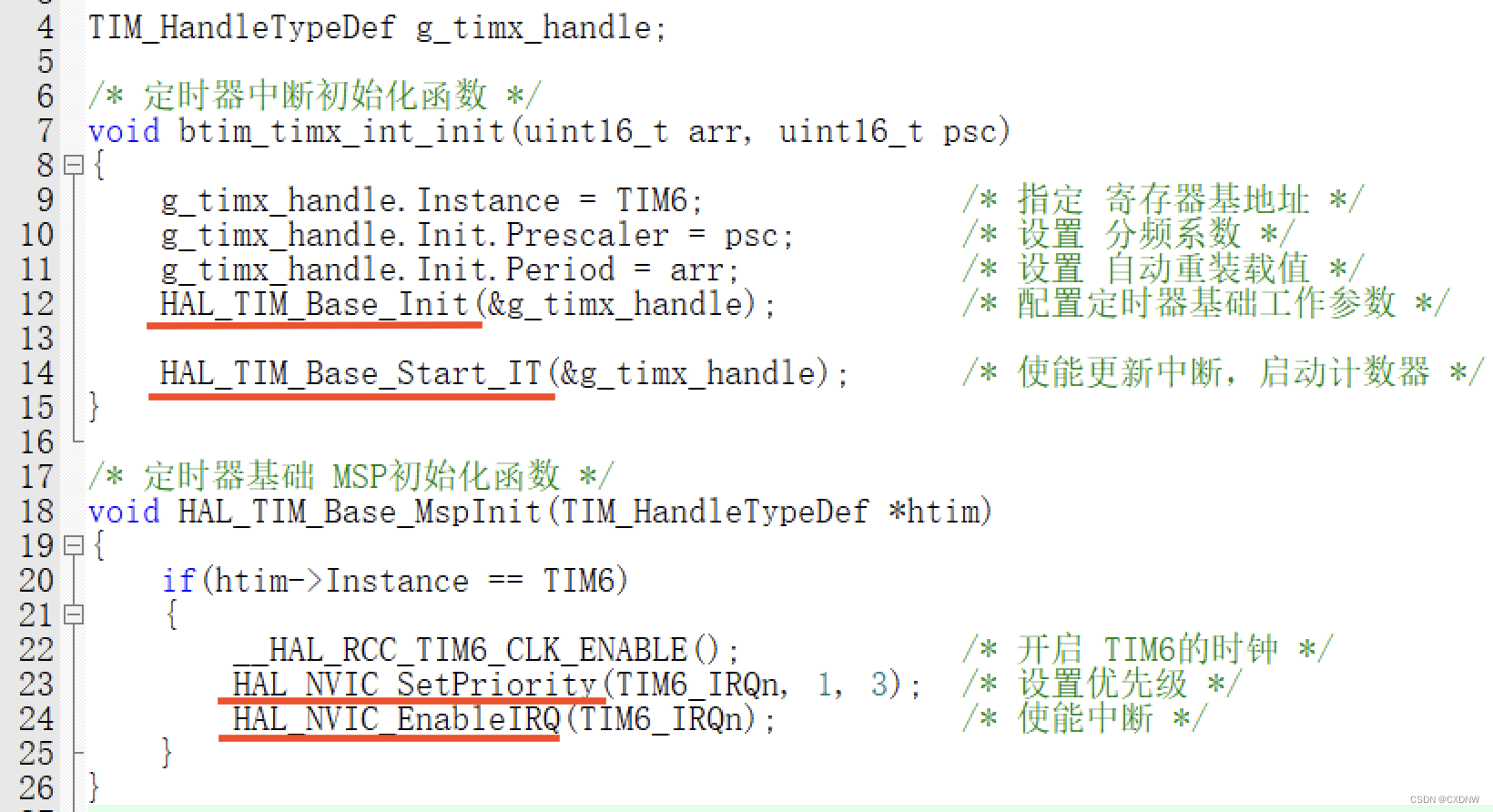 (3)使能更新中断并启动计数器:HAL_TIM_Base_Start_IT()