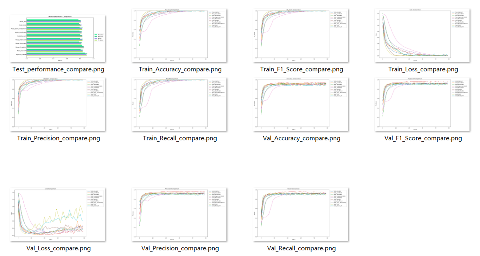 训练完模型可以做对比实验,通过写代码可以制作对比曲线图和柱状图,项目的最终实验效果如下: