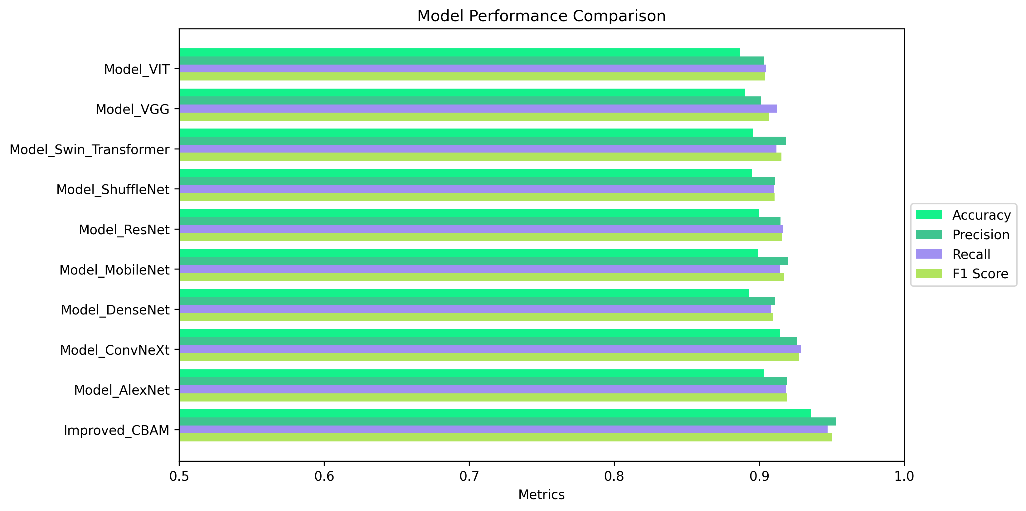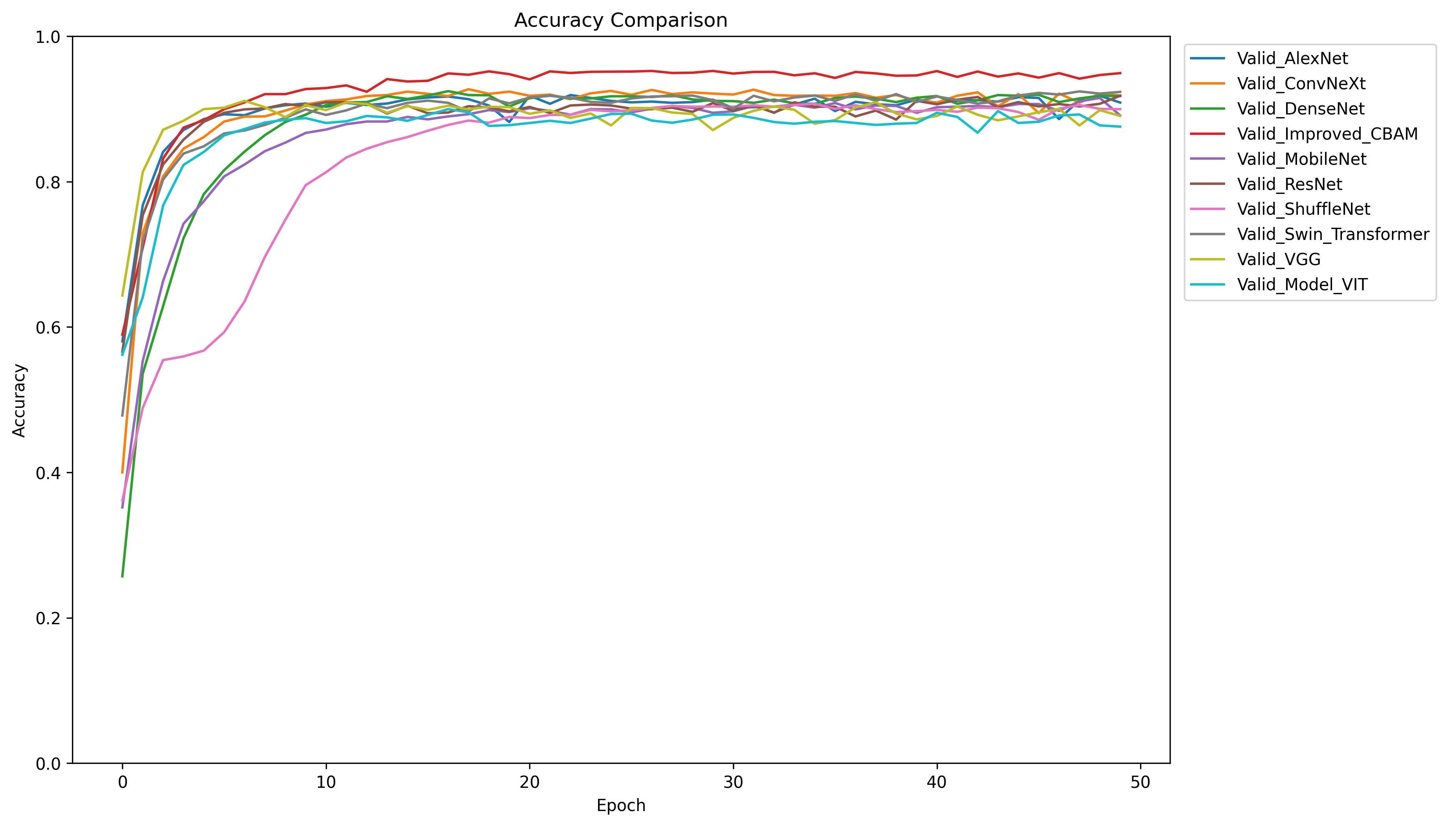 常见的做法是先选择2-4种候选模型(9种模型都用有点多,推荐选部分你喜欢的模型)做对比实验,选出性能最好的模型,在最优的模型的基础上,进一步增加cbam注意力机制,进行优化改进。如果老师要求高,可以在进一步做消融实验(即模型改进优化前后的对比实验)。