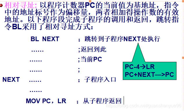 注意:以PC作为基地址的相对偏移寻址指令只有LDR,而没有STR指令。