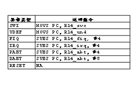 (4)写出ARM处理器异常中断的类型,对应的工作模式,及对应的中断向量
