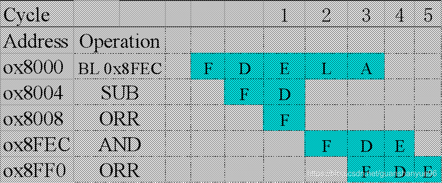 (4)简述ARM三级流水线每一级所做的工作,占用的资源