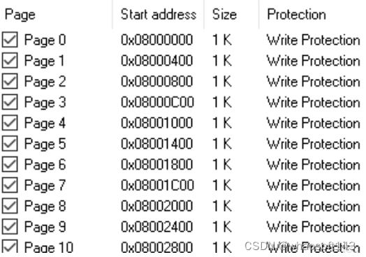 STM32还提供了一个特别的保护,即对Flash存储区施加读保护后,即使没有启用写保护,Flash的第 0 ~ 3 页也将处于写保护状态,这是为了防止修改复位或中断向量而跳转到RAM区执行非法程序代码。