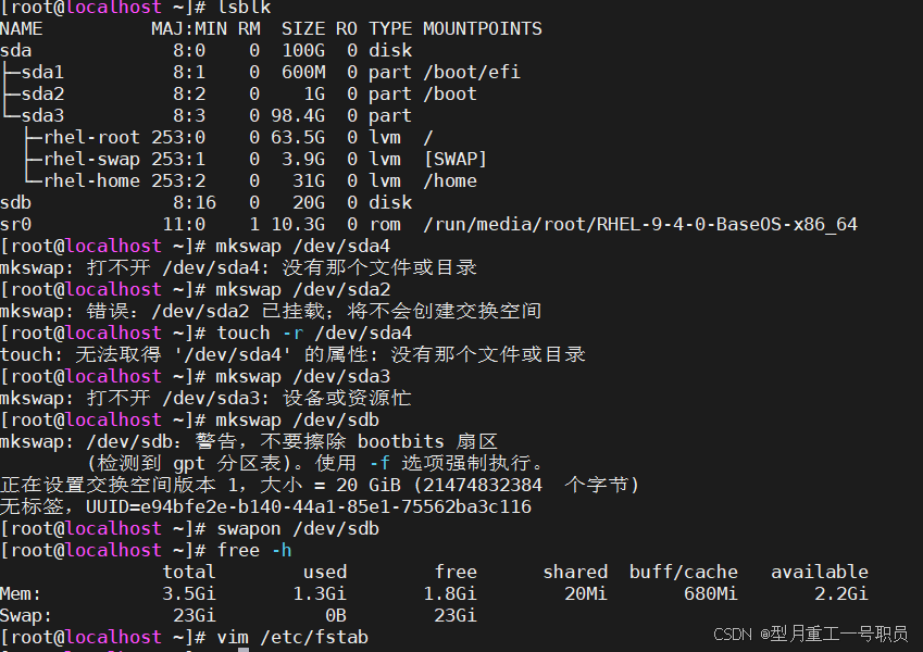 添加过程:新建分区->格式化该分区->启用新的swap->查看系统信息->挂载