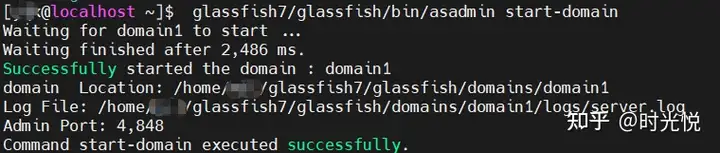 执行结果如图,显示GlassFish域启动成功。