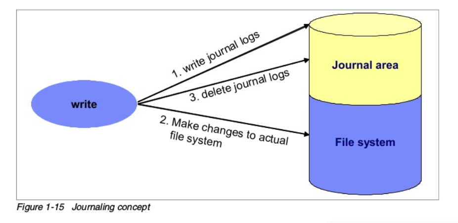 但是如果卷特别大的时候, 这个修复过程就会变得很漫长, 只能干等着fsck工作完之后才能使用这系统。 日志文件系统解决了这个问题, 在写入实际的文件系统之前, 它先把要修改的数据写入一个叫做日志区域(journal area)的地方。 日志区域可以在文件系统上, 也可以不在文件系统上。 写入日志区域的数据叫做日志记录(joutnal log)。