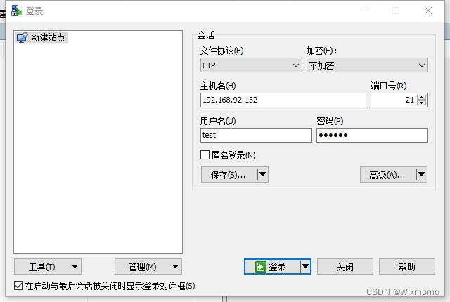 安装winscp软件,进行文件的上传下载测试,默认文件上传到test的家目录。