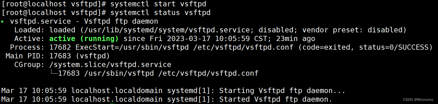 1.3 启动vsftpd服务、查看服务状态