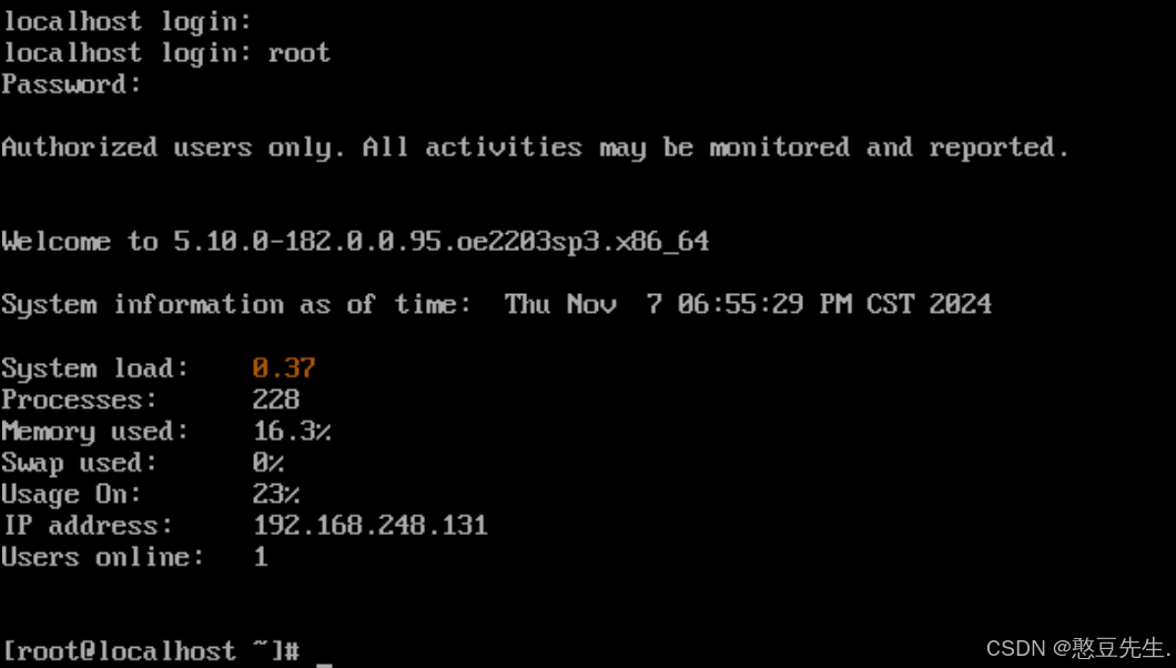 [root@server ~]# reboot # 重启 - 修改root密码: