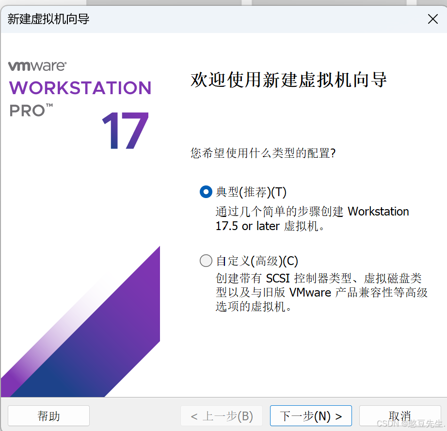 第一步:文件菜单->新建虚拟机->典型->下一步