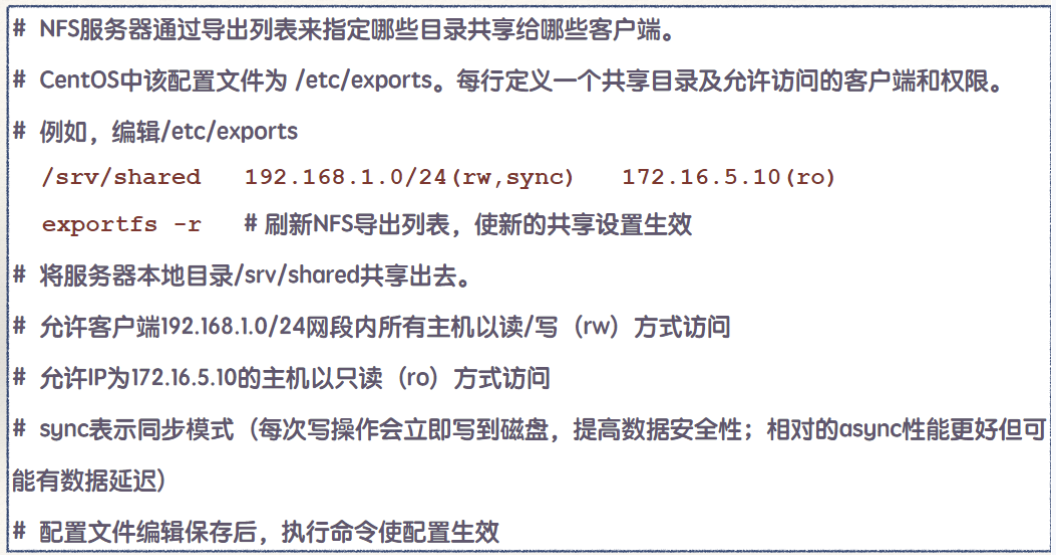 2.NFS服务器通过导出列表指定哪些目录共享给客户端