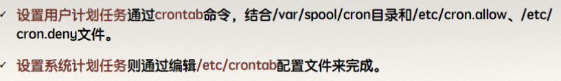 cron任务的⼯作也依赖于名为crond的系统服务,和at任务不同的是该系统服务默认开启,且常驻内存。