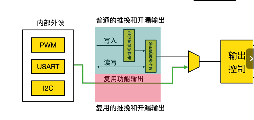 输出模式:将引脚配置为输出模式,用于驱动外部设备或信号。