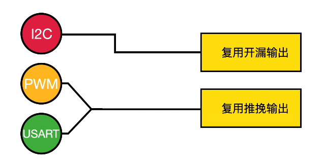 开漏输出模式常用于一些需要多个设备共享总线的情况,比如 I2C 总线。多个设备的开漏输出引脚连接在一起,通过外部上拉电阻实现电平的拉高,这样可以避免多个设备同时输出高电平时产生冲突。