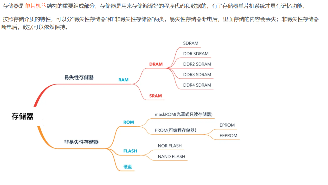 按照存储器在计算机中的用途和分类,嵌入式系统的存储器包括内部存储器和外部存储器。将存储器按照存放信息的易失性,可分为易失性存储设备和非易失性存储设备。
