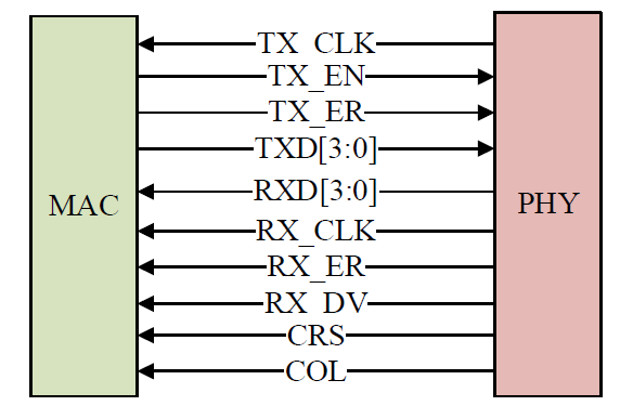 MII 接口的缺点就是所需信号线太多,这还没有算MDIO 和MDC 这两根管理接口的数据