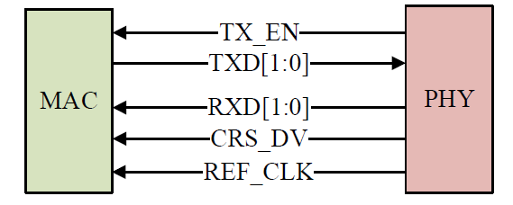 REF_CLK:参考时钟,由外部时钟源提供,频率为50MHz。这里与MII 不同,MII 的接