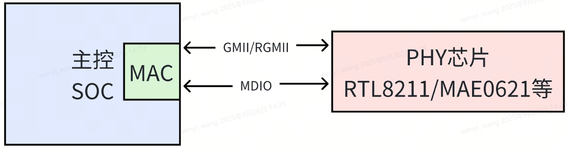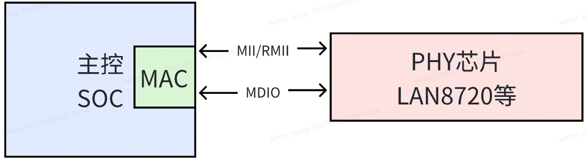 SoC 内部MAC 外设与外部PHY 芯片的连接如图所示: