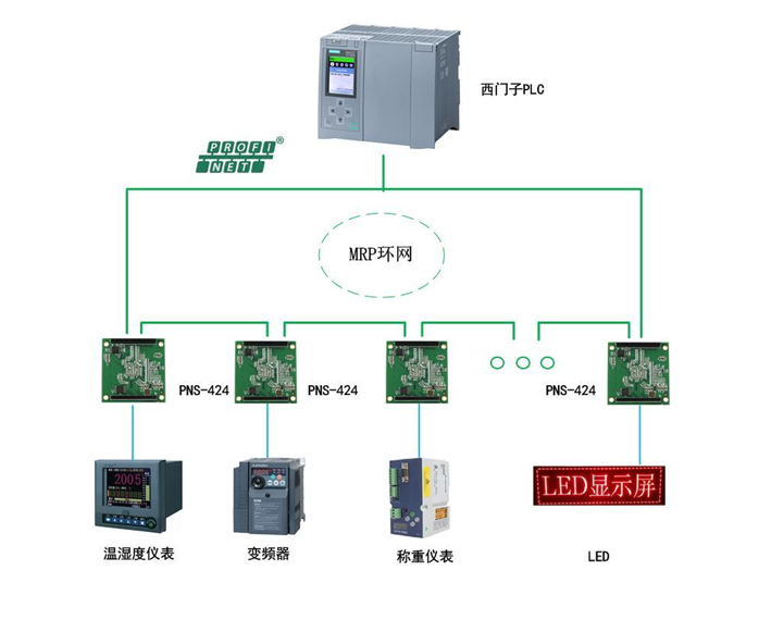 稳定可靠的通信:PNS-424完全符合PROFINET V2.43协议规范,支持RT(实时)和IRT(等时实时)通信,确保数据在复杂工业环境中的稳定传输。同时,其具备的MRP(介质冗余协议)环网冗余功能,进一步提升了通信的可靠性。