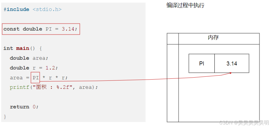 #define pi 3.14//定义一个常量pi,常量值3.14