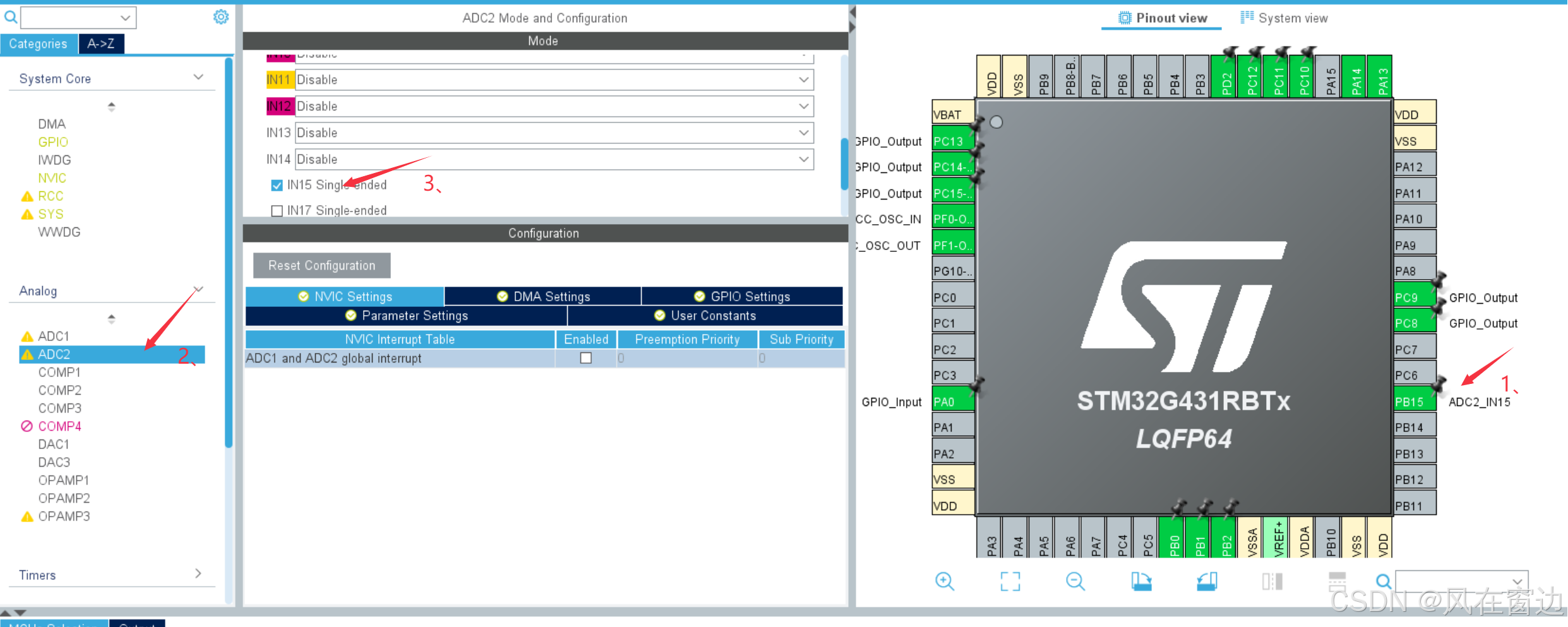 将PB0、PB1、PB2、PA0在cubemx上配置为GPIO_Input模式