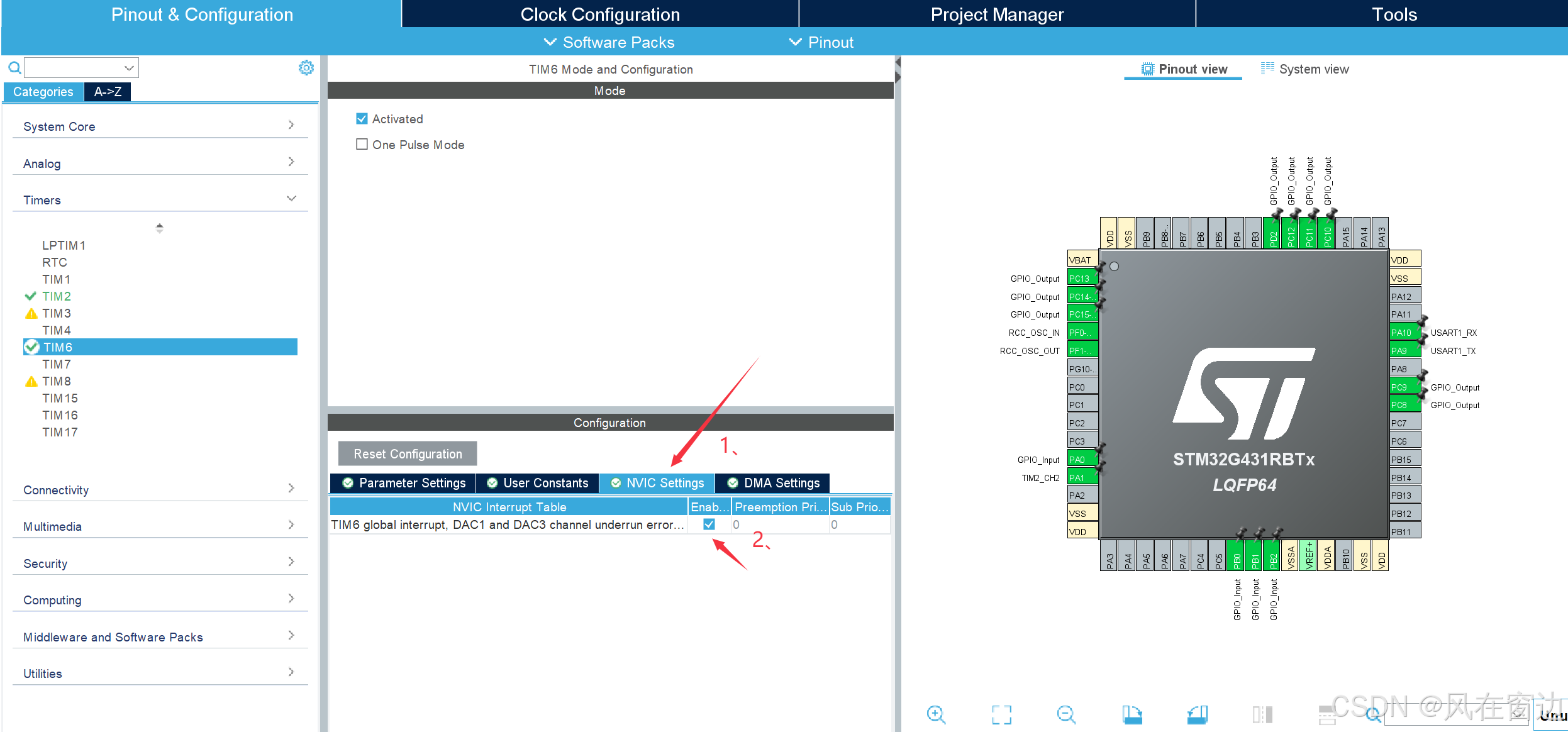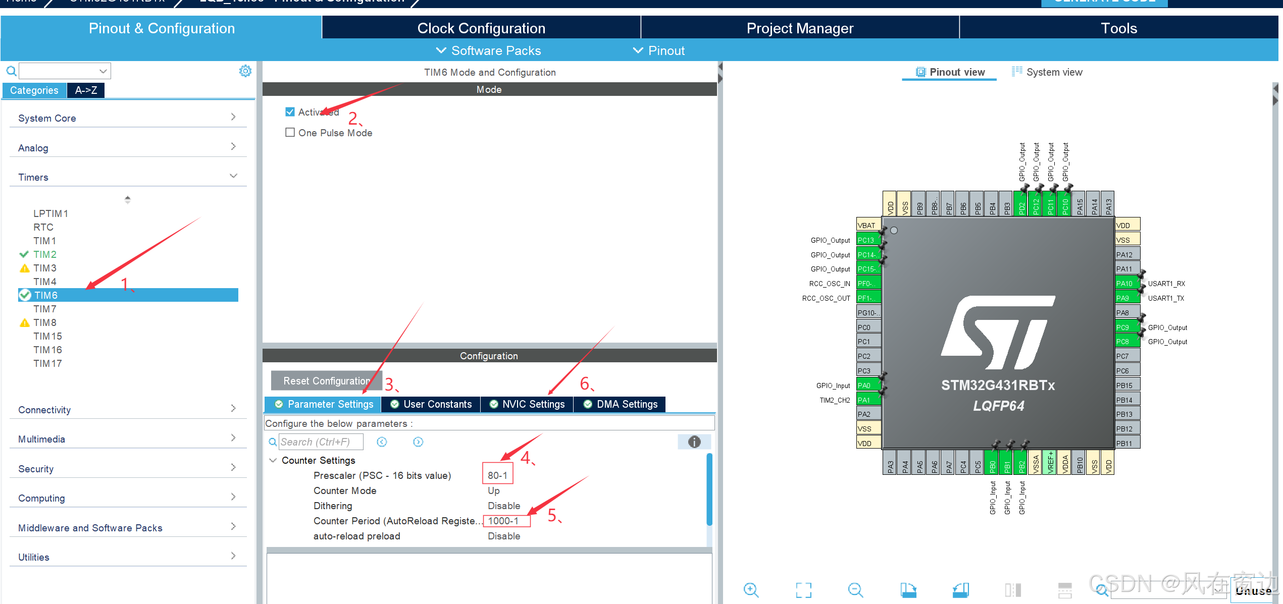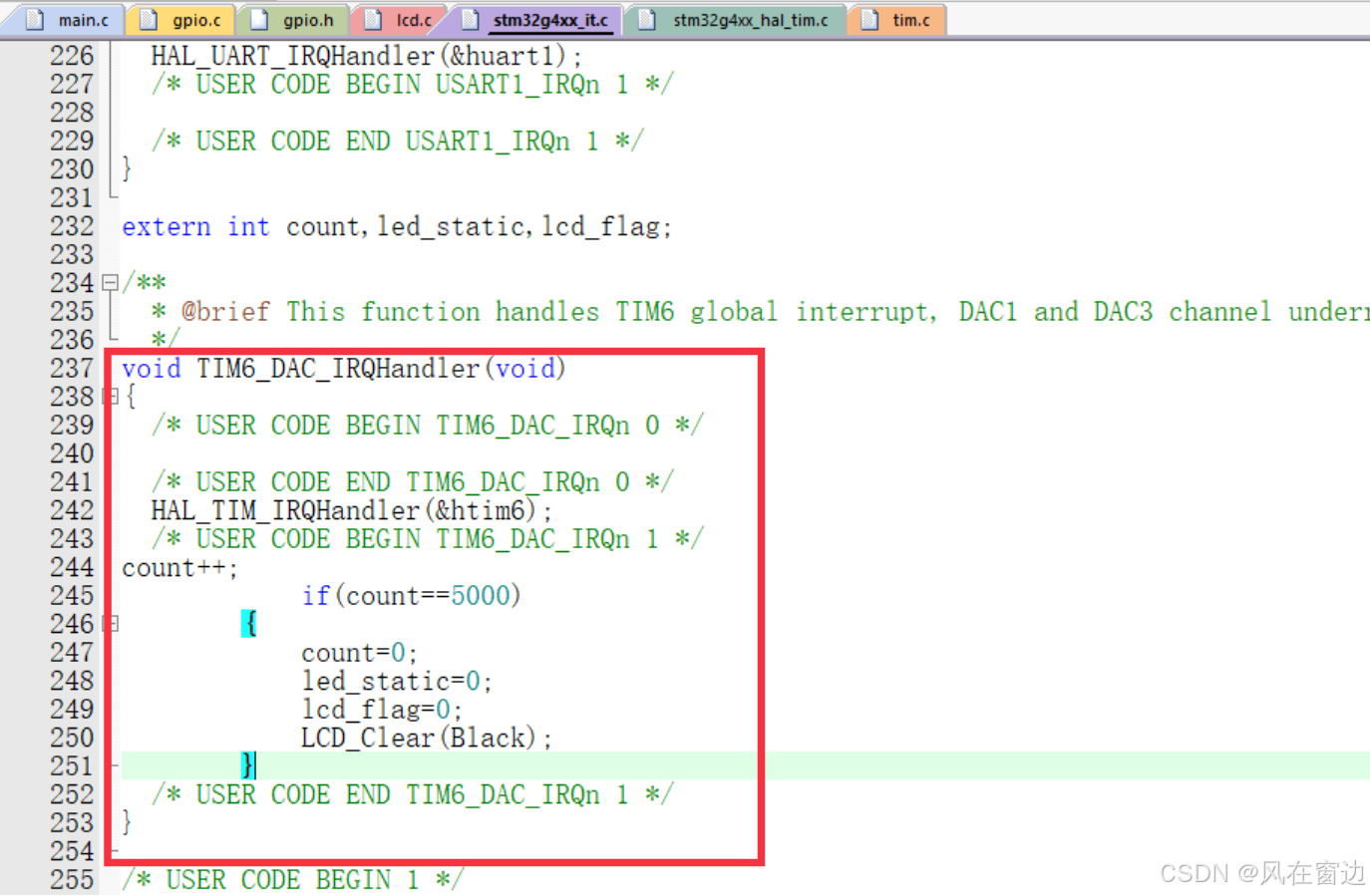 将定时的代码写在stm32g4xxit.c中的TIM6DAC_IRQHandler(void)