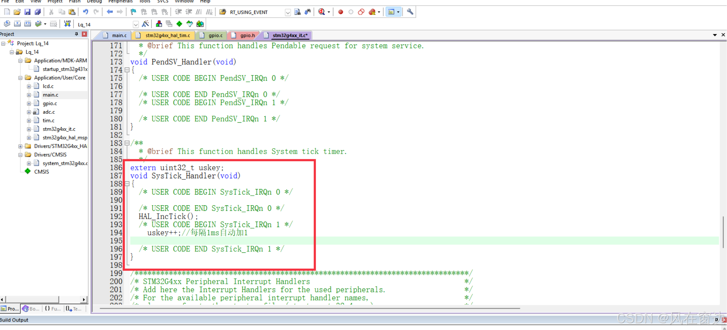 同时uskey需要放到stm32g4xx_it.c文件的void SysTick_Handler(void)中,如下图。