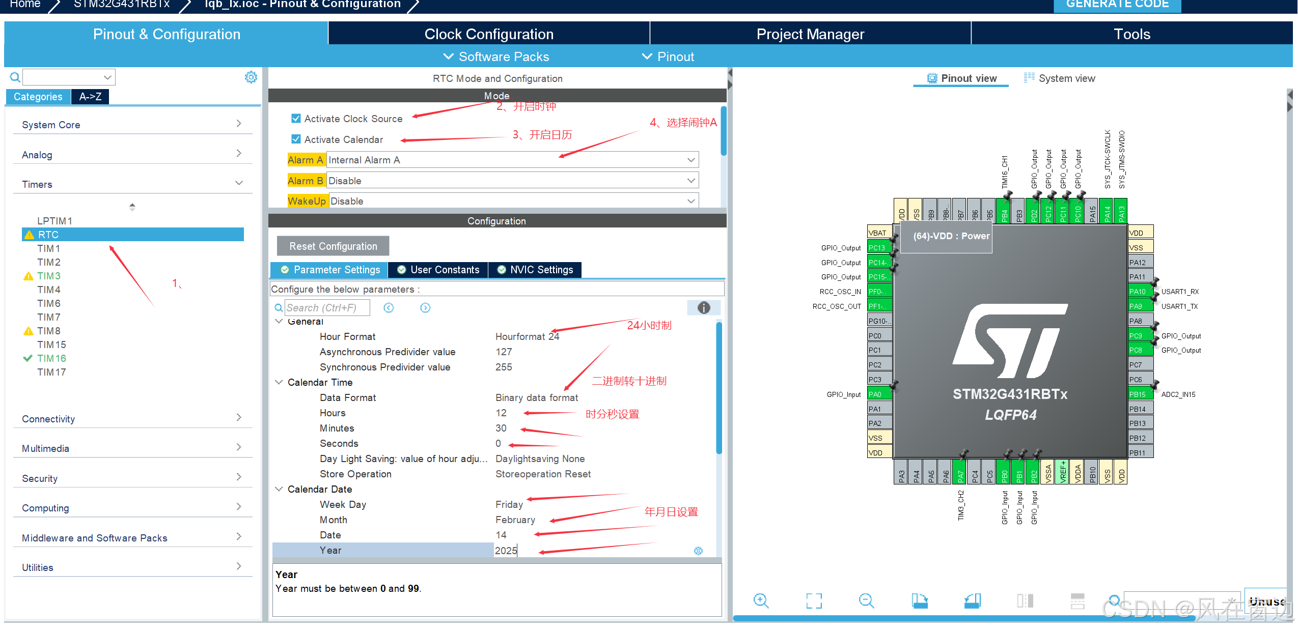 注意:在开始写之前需要对rtc进行移植,在main.c中滑到最下找到void SystemClock_Config(void)