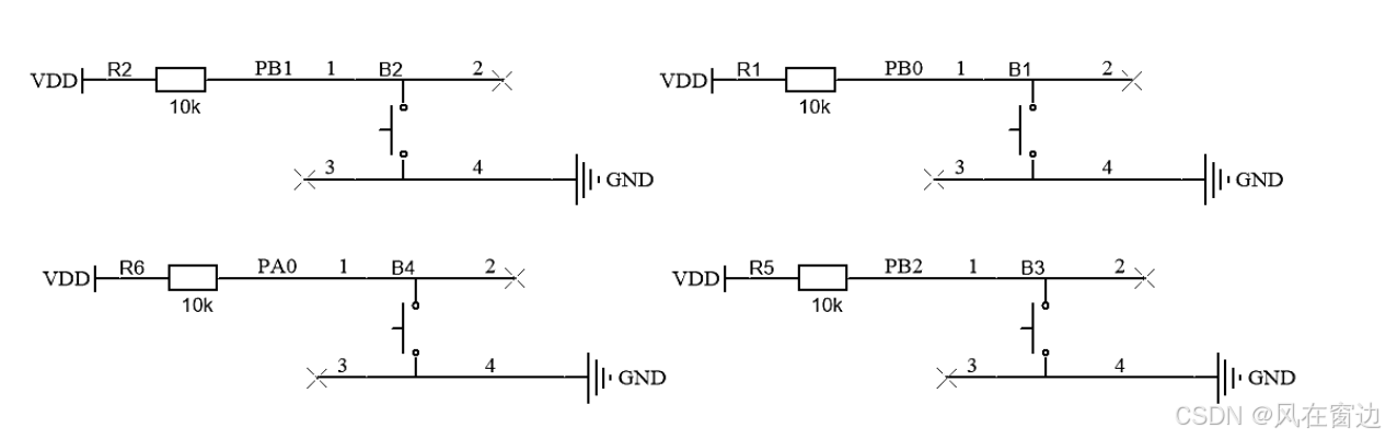 如果按键想用外部中断的话,需要注意PA0、PB0是同一个中断线,外部中断只能用三个按键,剩下的一个按键还是需要读写操作,所以最好还是都使用读写操作吧。
