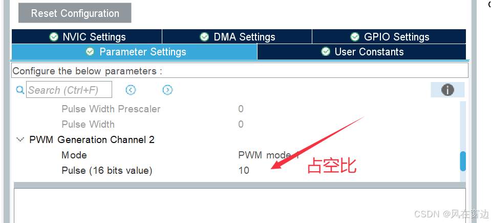 __HAL_TIM_SetCompare的第三个参数除以Counter Period的值就是占空比。