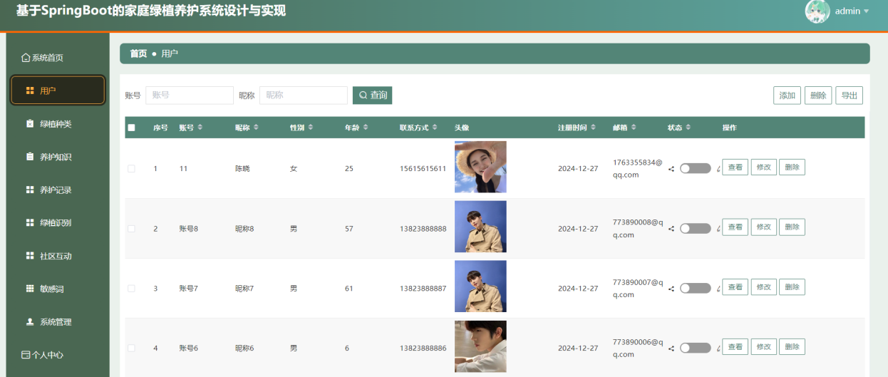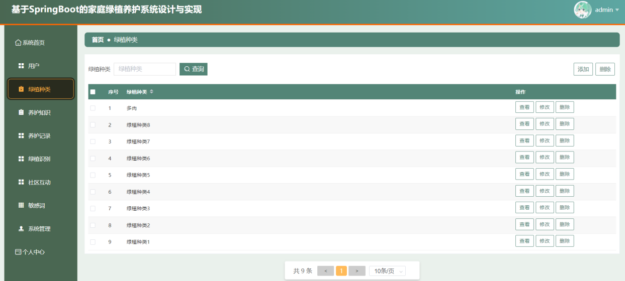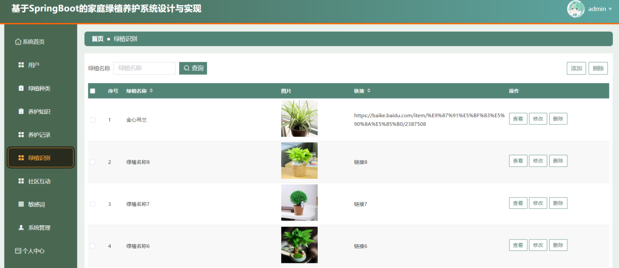 (3)管理绿植种类:包括添加新的绿植品种、修改现有品种的信息、删除不需要的品种,并支持查询操作,以便用户获取准确的植物信息。