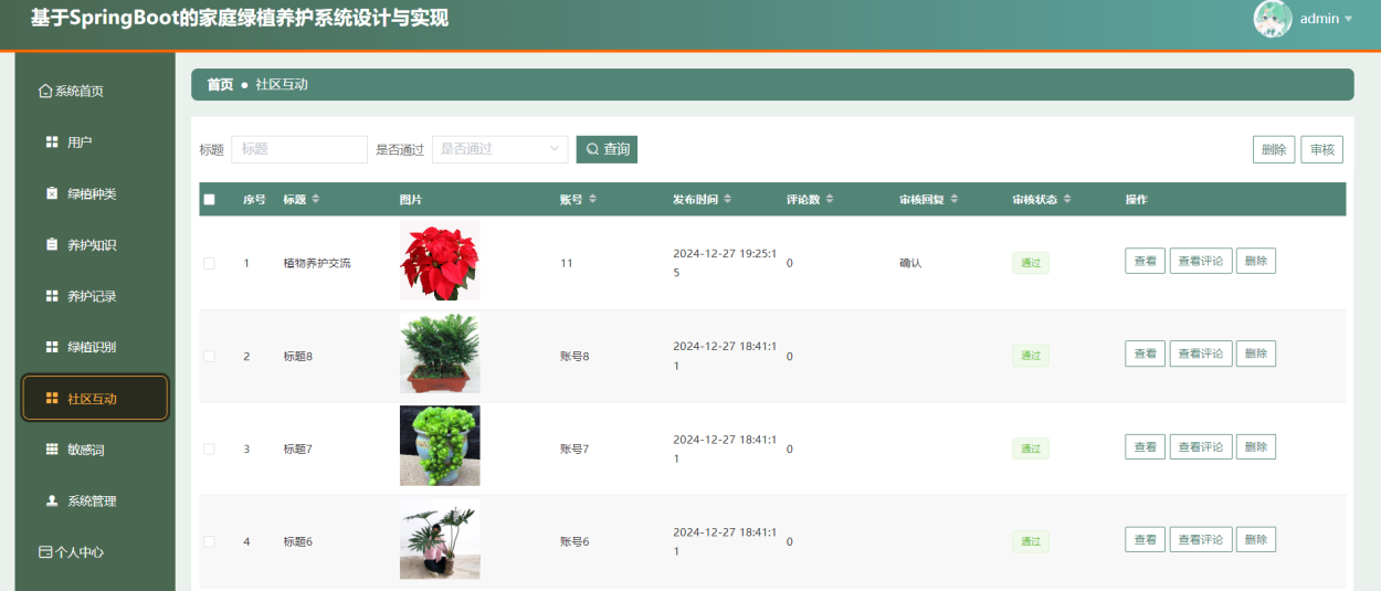 (7)管理社区互动:包括删除不当评论、查看评论内容、审核新发布的帖子,并支持查询操作。