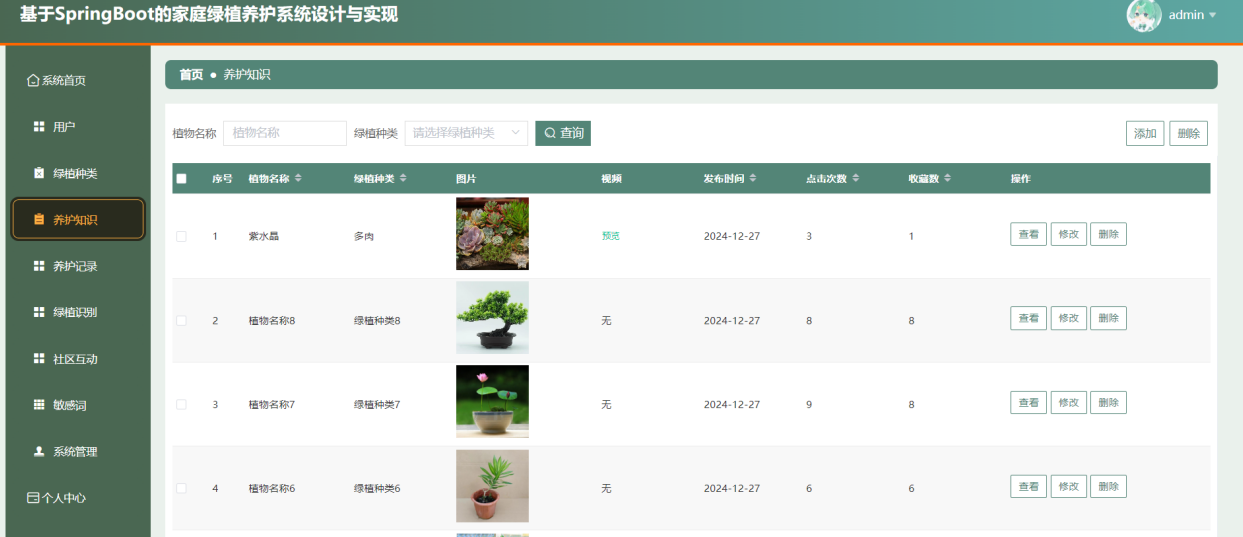 (2)管理养护知识:包括管理员对养护知识的新增、修改、删除以及查询,确保提供最新的植物养护指南。