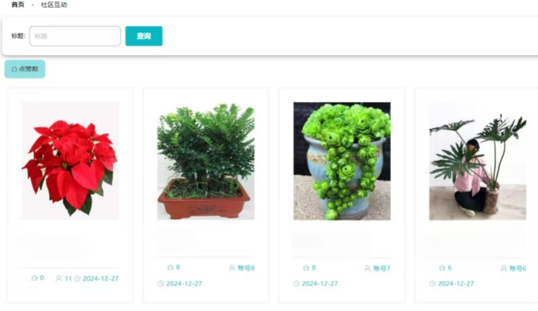 系统整合了养护知识查询、社区互动、智能助手咨询、养护记录管理及绿植识别等核心功能。养护知识库涵盖丰富植物养护指南、技巧与常见问题解答,为用户提供全面知识支持;绿植识别功能借助图像识别技术,方便用户识别植物种类并获取养护信息;社区互动模块搭建起用户交流平台,促进经验分享与互动。这些功能协同运作,满足了用户从知识获取到实践操作再到社交互动的多元需求,显著提升了用户的绿植养护体验与效率。从技术层面看,系统采用Spring Boot框架结合Vue前端技术,实现前后端分离架构,搭配MySQL数据库与MyBatis Plus简化数据操作。这种技术选型不仅提升了开发效率,还确保了系统具备高效的数据处理能力、良好的稳定性和可扩展性。