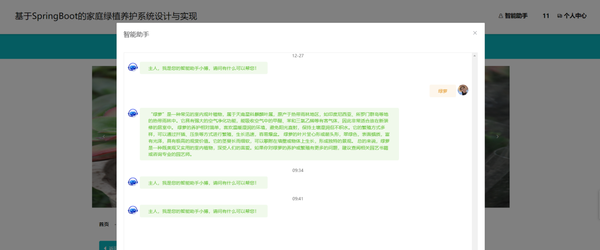 (3)咨询智能助手:支持用户向智能助手提问并获取植物养护相关的建议。