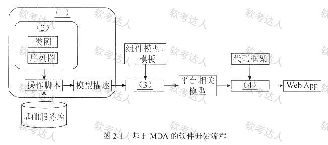 (1)平台独立模型、(2)UML模型、(3)模型转换、(4)代码生成。