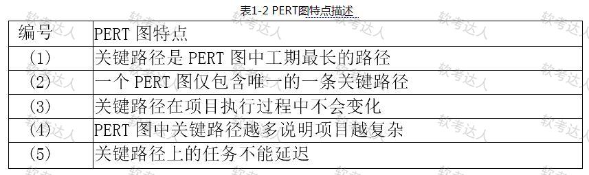 PERT图采用网络图来描述一个项目的任务网络,不仅可以表达子任务的计划安排,还可以在任务计划执行过程中估计任务完成的情况。针对表1-2中关于PERT图中关键路径的描述(1)~(5),判断対PERT图的特点描述是否正确,并说明原因。